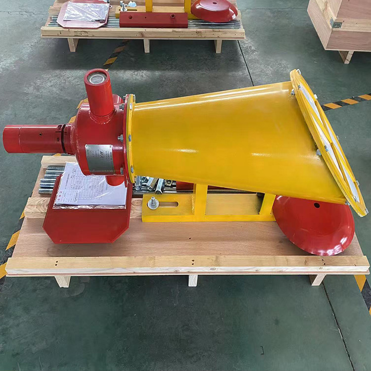 当煤矿井下发生瓦斯煤尘危险时 接收板接收到冲击波信号,带动推杆后移,触动主体内锁紧装置,诱发触发装置动作,从而使主体内的灭火介质喷出,形成有效长度30m以上浓度超过110g/m3的灭火介质云雾团,该云雾团可在巷道空气中稳定悬浮370s以上。装置可充分利用冲击波传播速度与火焰传播的速度差使灭火效果更可靠,有效弥补了隔爆水袋因冲击波和火焰传播存在时间差而造成的失效问题。